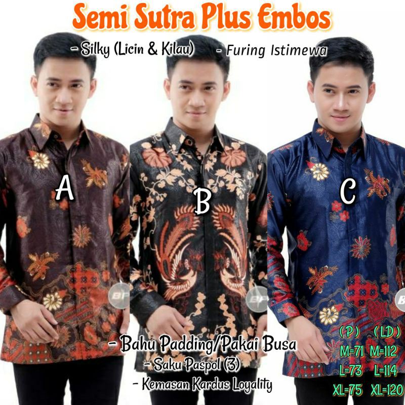 Name: Semi Sutra Silky Premium - Kemeja Batik Halus Kilau Dan Licin - Semsut Embozz Lapis Furing Full Body