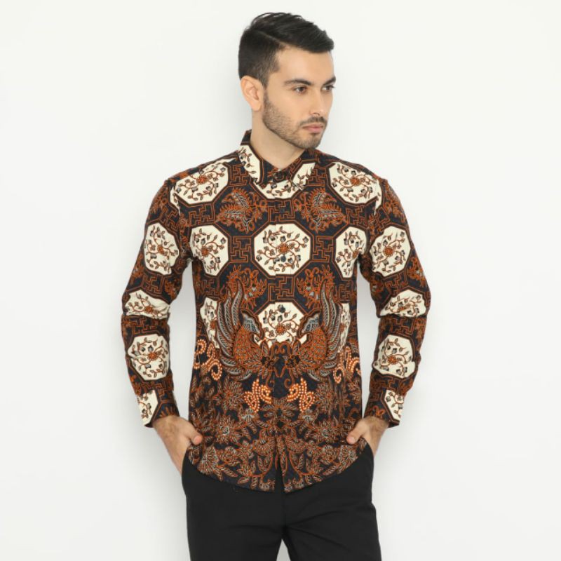 Brown Fashion Kemeja koko Slim Fit Longsleeve Pria - Kemeja batik modern untuk casual dan formal look - Multiwarna
